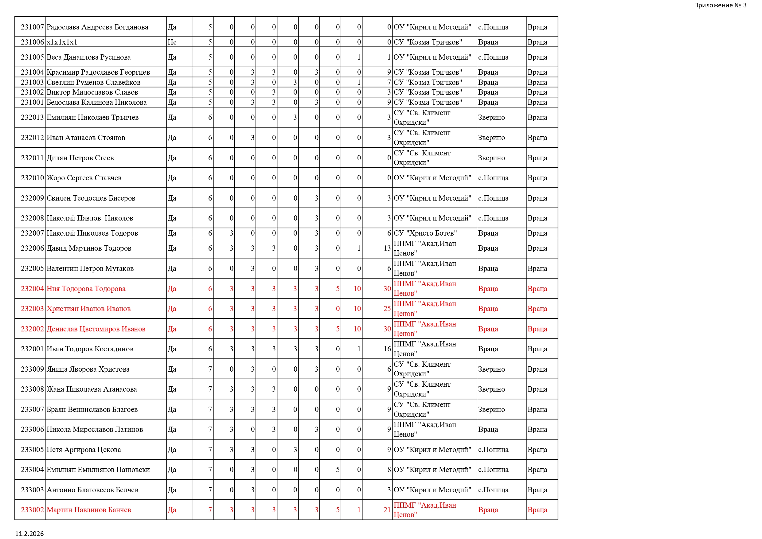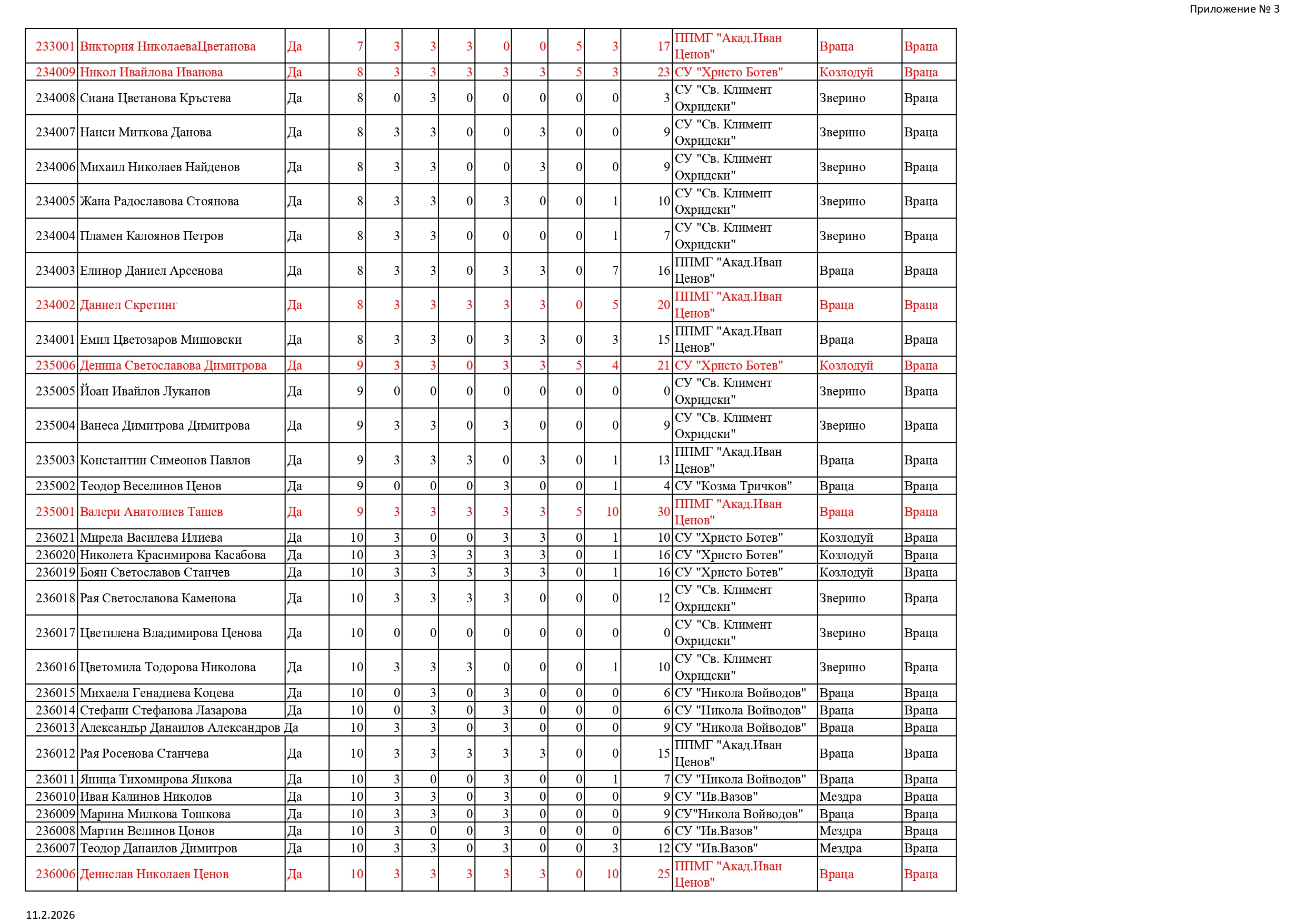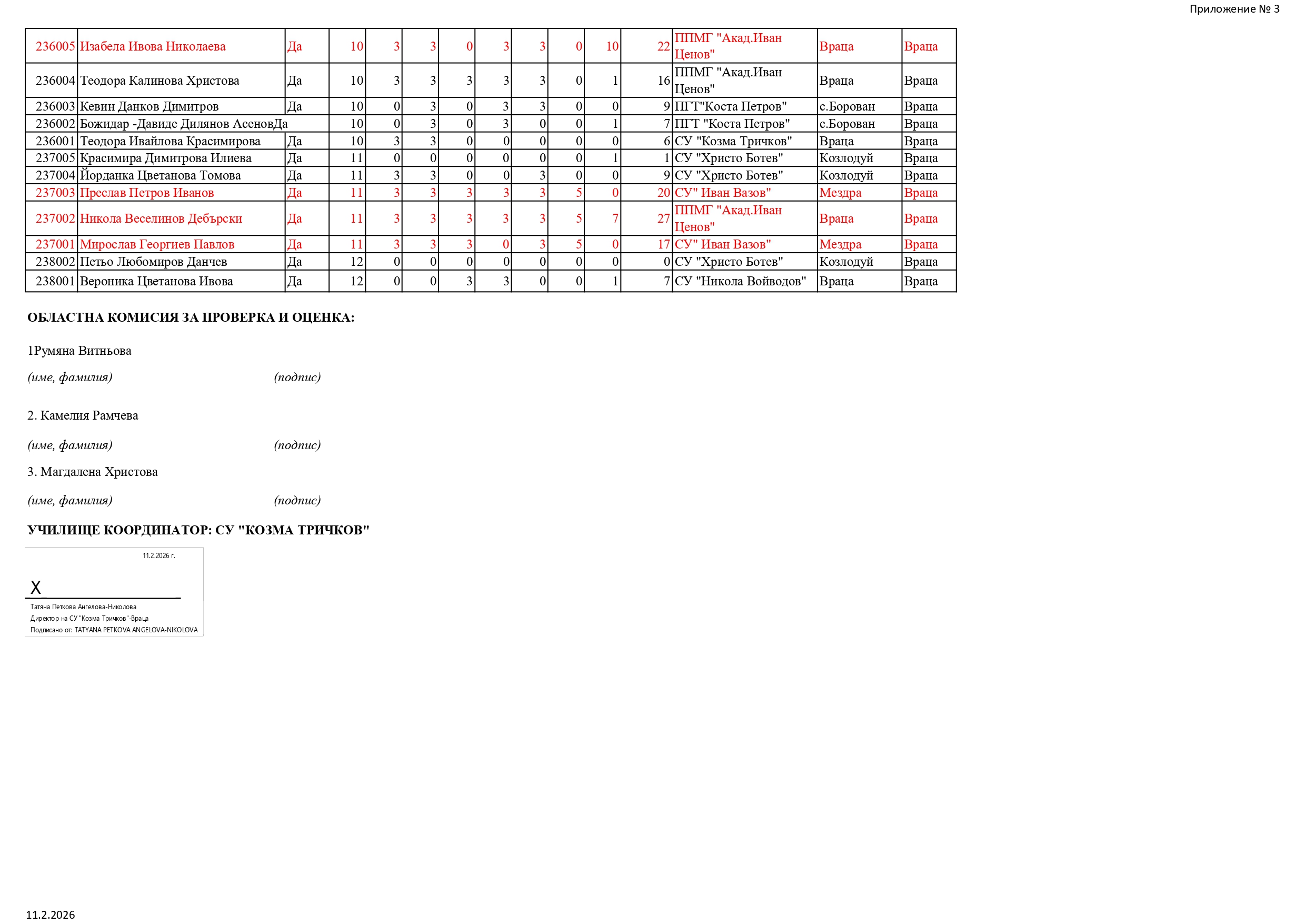 Сигнали за допуснати технически неточности и грешки в отразяванията в протоколите се входират чрез директора на училището координатор не по-късно от 17:00 ч. на 12.02.2026 г.