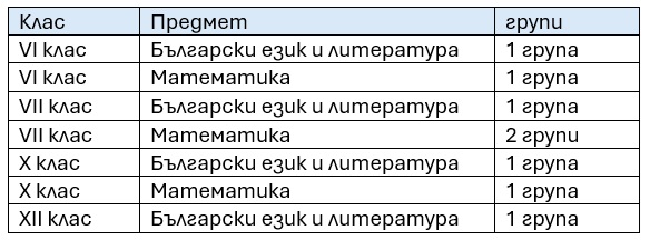 - провежданена допълнителни обучения за ученици, нуждаещи се от обща подкрепа за пълноценно участие в учебния процес;